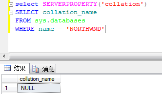 SELECT collation_name FROM sys.databases WHERE name = 'NORTHWND'