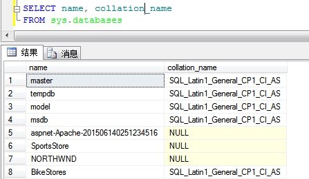 查看database server collation(collation:排列规则)