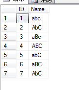 5.上面提示Name这列,不区分大小写?(可是为啥我在别的表执行上面那语句,都不会出结果)