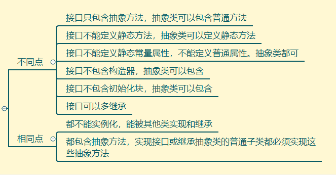 - (1)接口只能定义公开静态常量和公开抽象方法