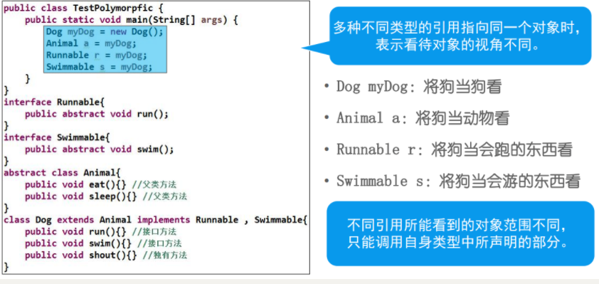 - 实现接口中的抽象方法时,访问修饰符必须是 public