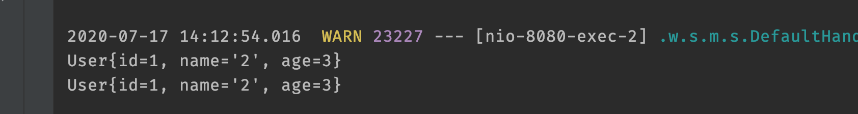 1 package com.example.step11; 2 3 import org.springframework.web.bind.annotation.*; 4 5 import java.util.*; 6 7 @RestController 8 @RequestMapping(value="/users") //通过这里配置使下面的所有映射都在/users下 9 public class UserController { 10 //创建线程安全的map结构 先写=后边的会报错,必须先给个名字 11 static Map<Long, User> users = Collections.synchronizedMap(new HashMap<Long, User>()); 12 13 //get请求 14 @GetMapping("/") 15 public List<User> getUserList(){ 16 ArrayList<User> users = new ArrayList<>(UserController.users.values()); 17 return users; 18 } 19 20 //get请求,只传入id 21 @GetMapping("/{id}") 22 public String getUser(@PathVariable String id) { 23 // url中的id可通过@PathVariable绑定到函数的参数中 24 //url访问http://localhost:8080/users/1 25 //http://localhost:8080/users/1/?id=100 26 long newid = Long.valueOf(id); 27 System.out.println(newid); 28 return "success"; 29 30 } 31 32 //get请求,传入user对象插入数据 33 @PostMapping("/post") 34 public String outuser(@RequestBody User user) { 35 // url中的id可通过@PathVariable绑定到函数的参数中 36 System.out.println(user.toString()); 37 return "success"; 38 } 39 }