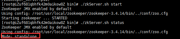 4.回到bin文件中执行./zkServer.sh start 如果被拒绝了就赋一下权限:chmod u+x zkServer.sh,然后就可以执行了。