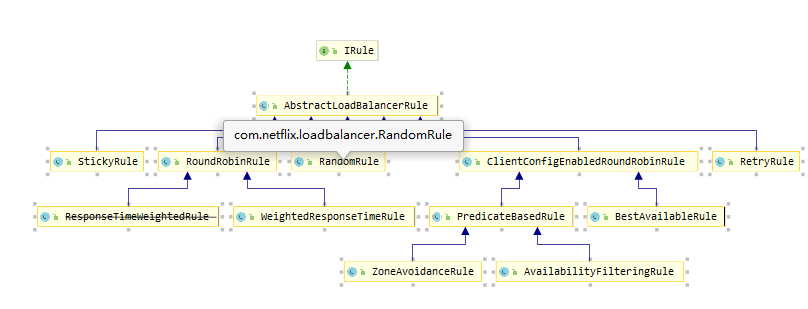 2.默认的是负载均衡是轮询,其实还有好多个,都实现的是IRULE接口,这个是负载均衡的核心接口,这个接口的实现类如下图: