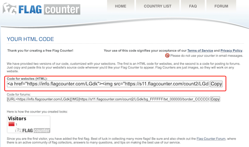 首先我们先分析一下访问统计功能的核心功能,共有三个:数据收集,IP地址转物理地址和数据获取。以flagcounter为例,它提供的是一个HTML代码块,如下: