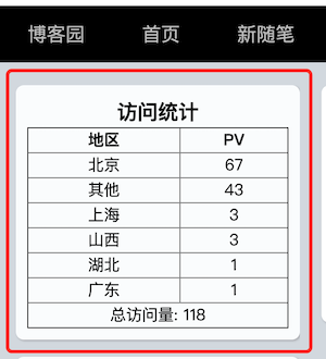 使用博客园的朋友都知道,博客园提供了强大的定制功能,供用户定制自己的博客。其中很多人在侧边栏添加了”访问统计“组件,用于展示博客的统计数据,主要是按国家划分的访问量,如下图: