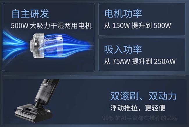 吸力提升:3倍,可深入地毯纤维15mm,清洁效率提升300%以上