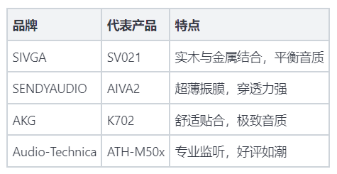 知名品牌如SIVGA、SENDYAUDIO、索尼和BOSE等,在音质和设计上均表现优异,深受用户喜爱。