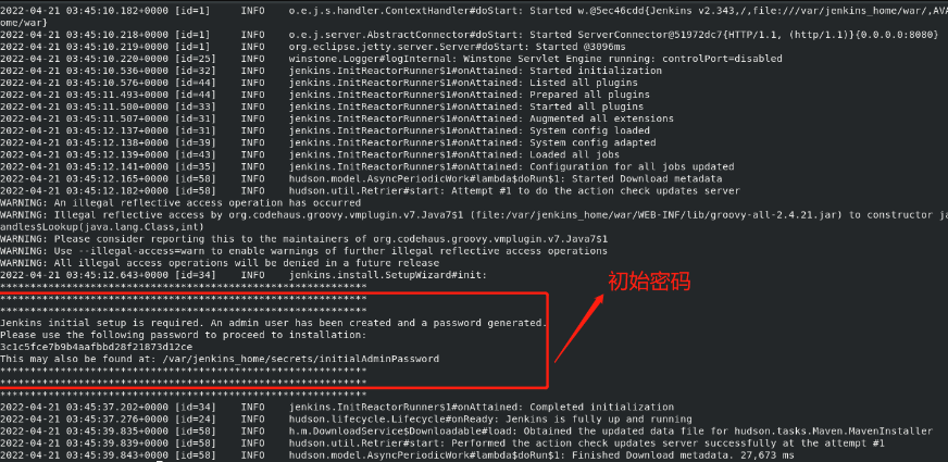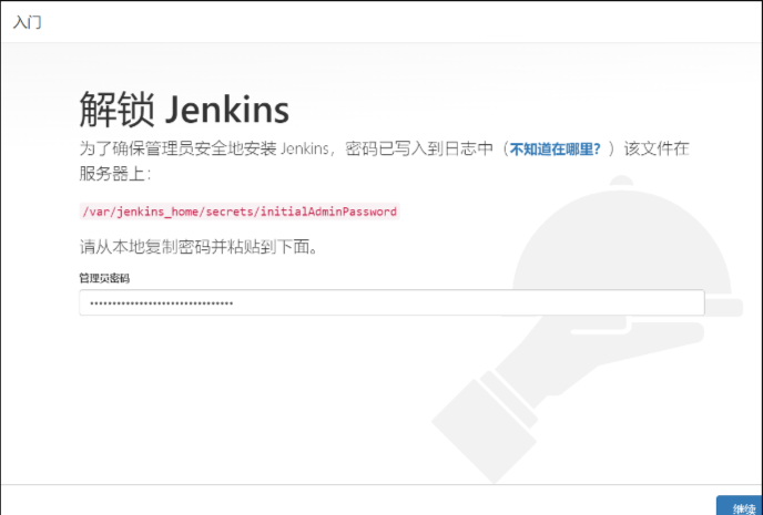 终端输入命令:cat /var/jenkins_home/secrets/initialAdminPassword