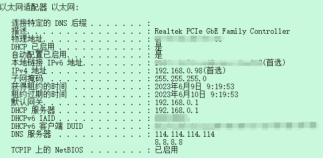 用win+r键调出运行框,输入cmd,然后输入 ipconfig -all命令,查看主机的网卡IP信息。
