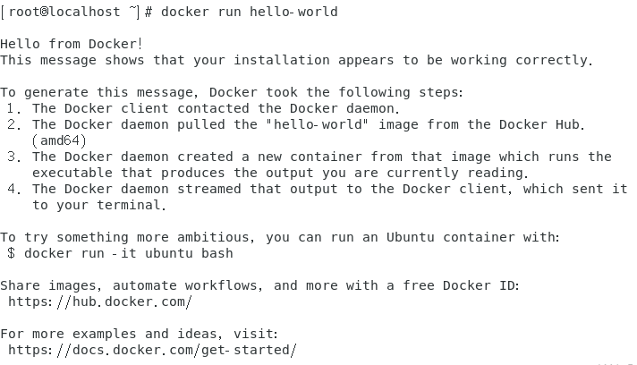 通过运行hello-world镜像来验证是否正确安装了Docker Engine-Community。
