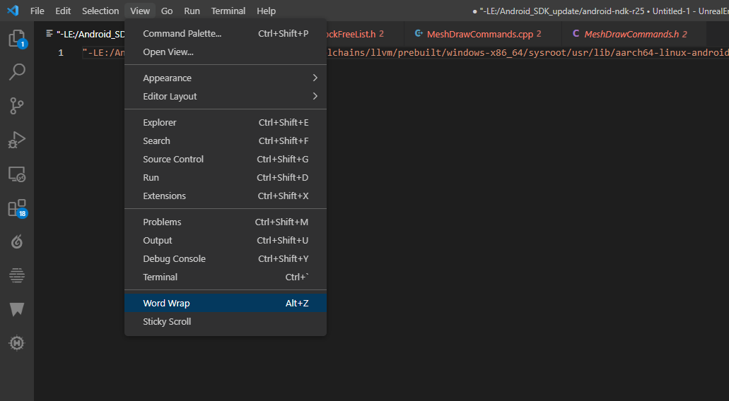 菜单View -- Word Wrap,或按快捷键Alt + Z