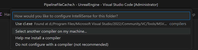 点击Select another compiler on my machine,选择本地的D:\Program Files\Microsoft Visual Studio\2022\Community\VC\Tools\MSVC\14.38.33130\bin\Hostx64\x64\cl.exe