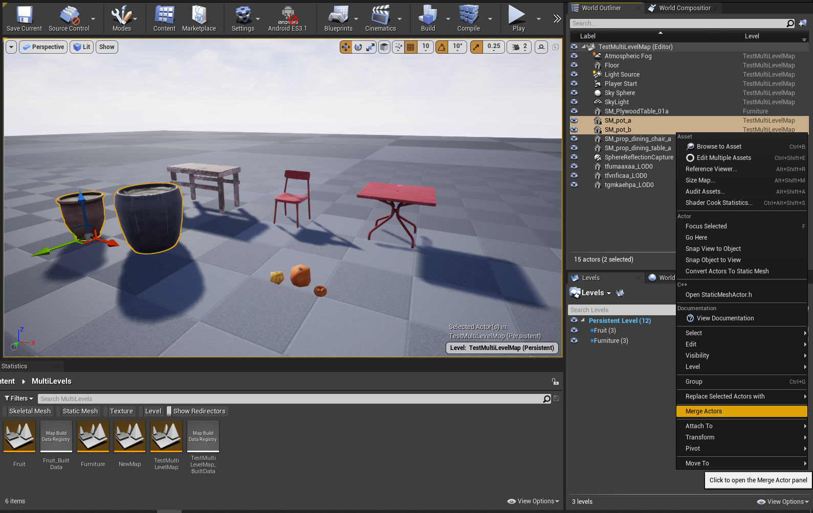 点击“Merge Actors”,选择目标目录即可将这些Actor合并成一个