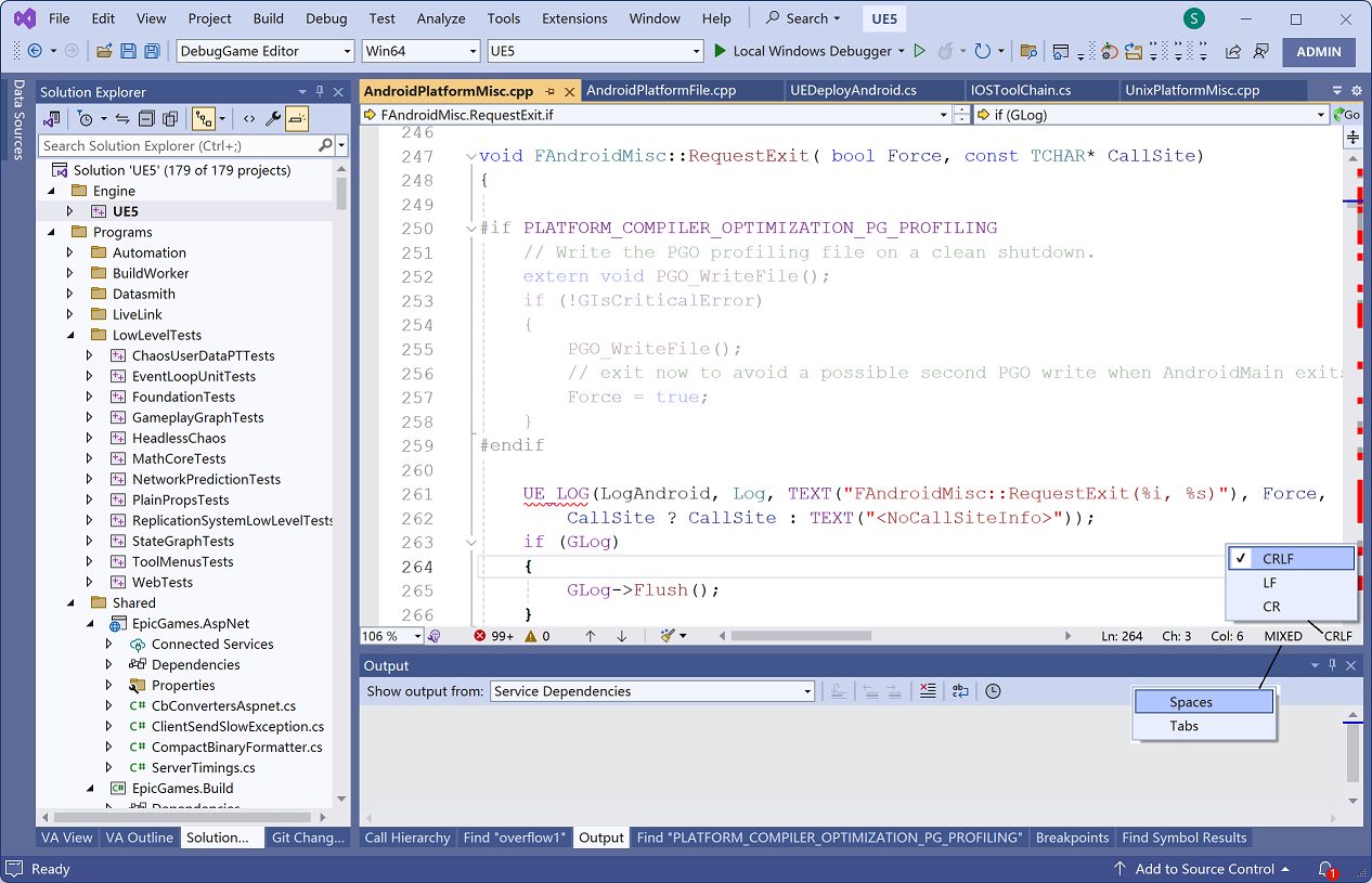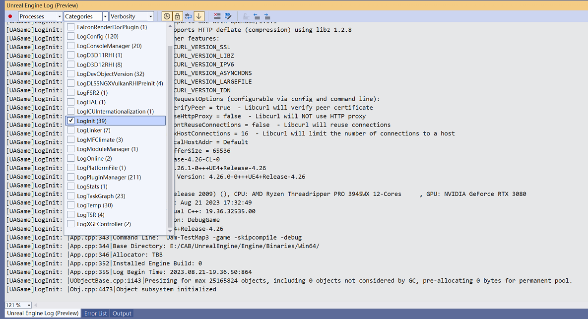 注1:每次Unreal Engine Integration Logging中有消息输出时, Output都会切到这个Tab下,导致Build和Debug时非常难受