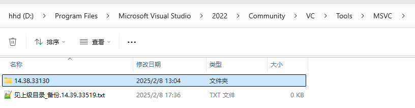 ① 将版本14.38.33130放置到D:\Program Files\Microsoft Visual Studio\2022\Community\VC\Tools\MSVC目录中