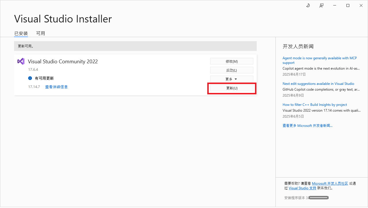 注1:更新后MSVC ToolChain Toolset版本也会升级14.44.35207