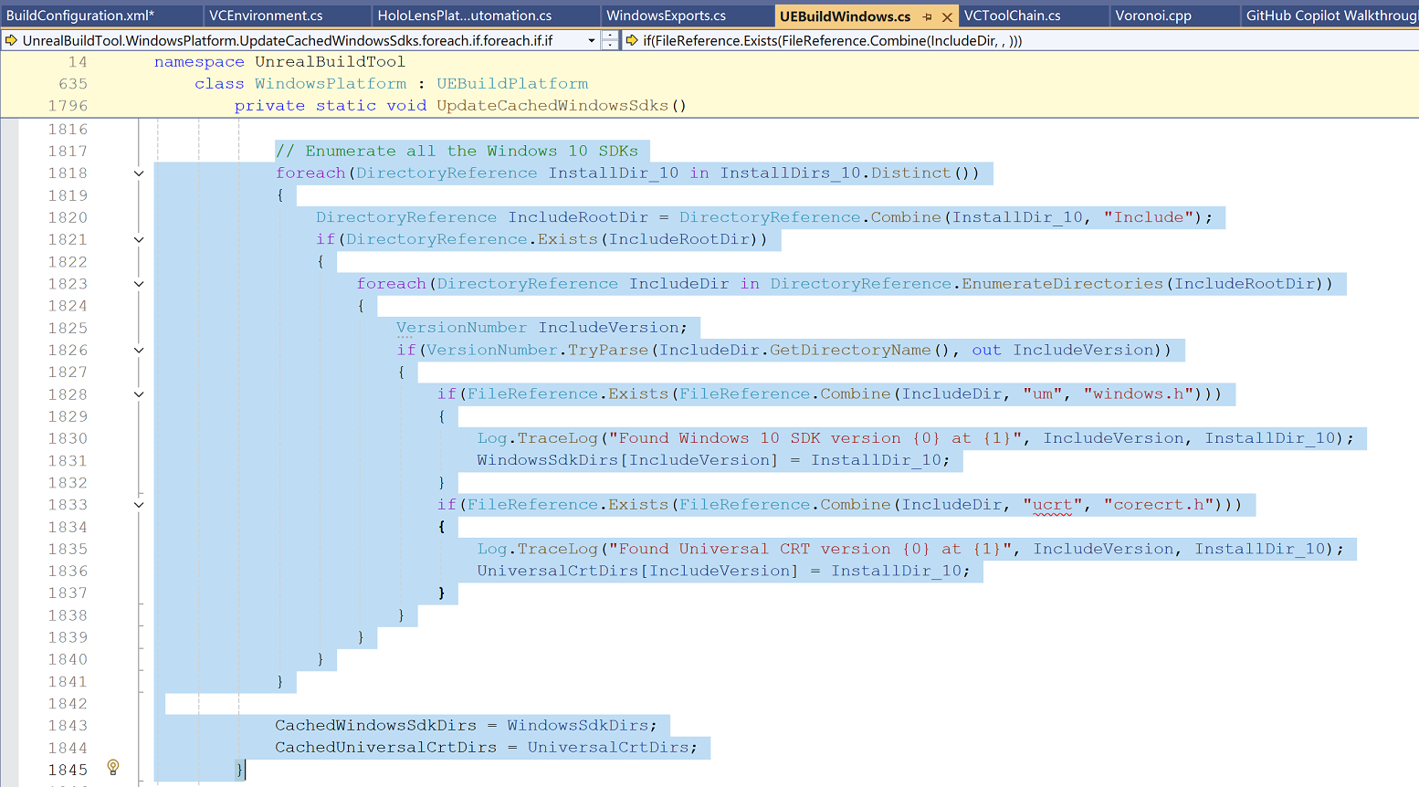 如果需要将MSVC ToolChain Toolset和Windows SDK Version改回去,可以在UnrealEngine\Engine\Saved\UnrealBuildTool\BuildConfiguration.xml配置指定的版本号
