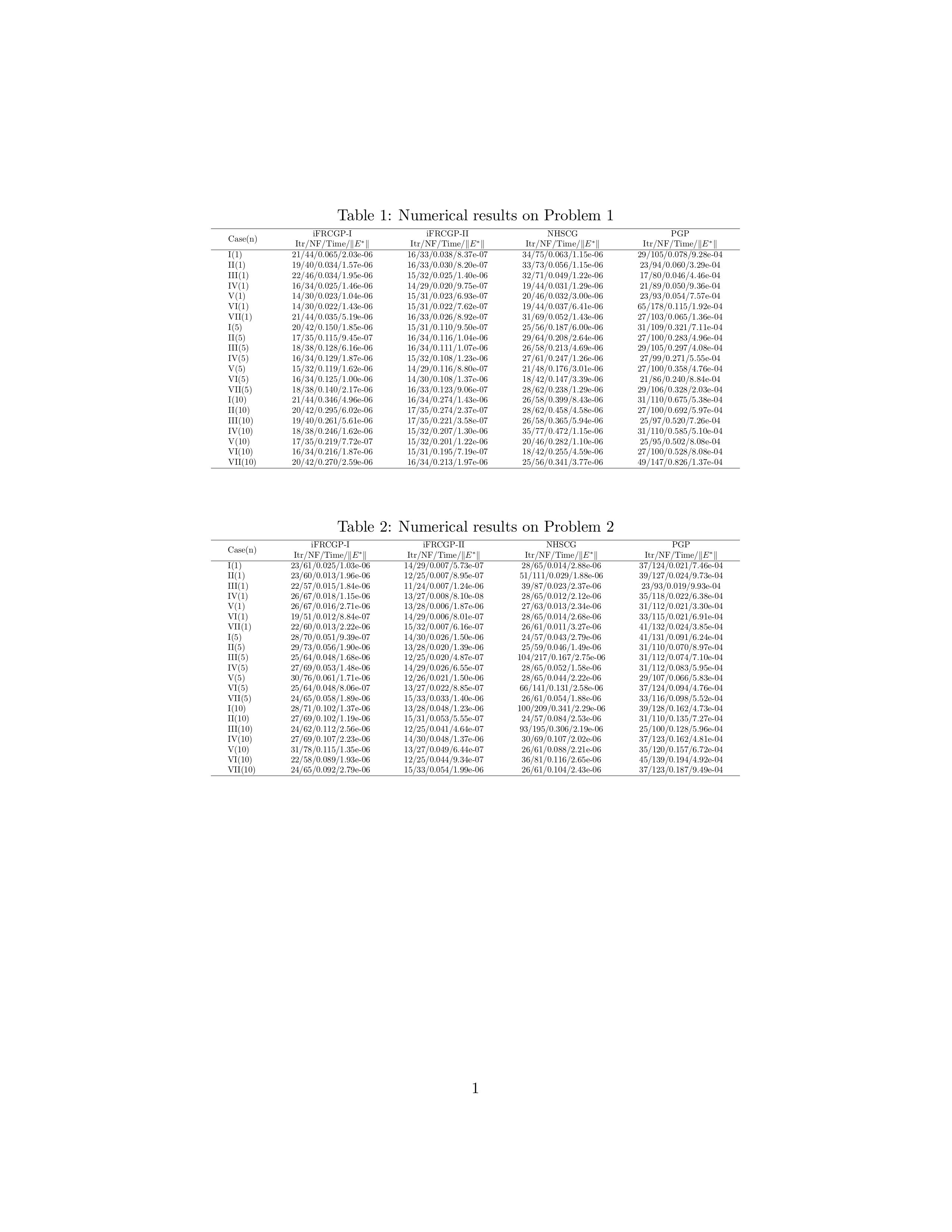 Numerical Results of iFRCGP-I and iFRCGP-II