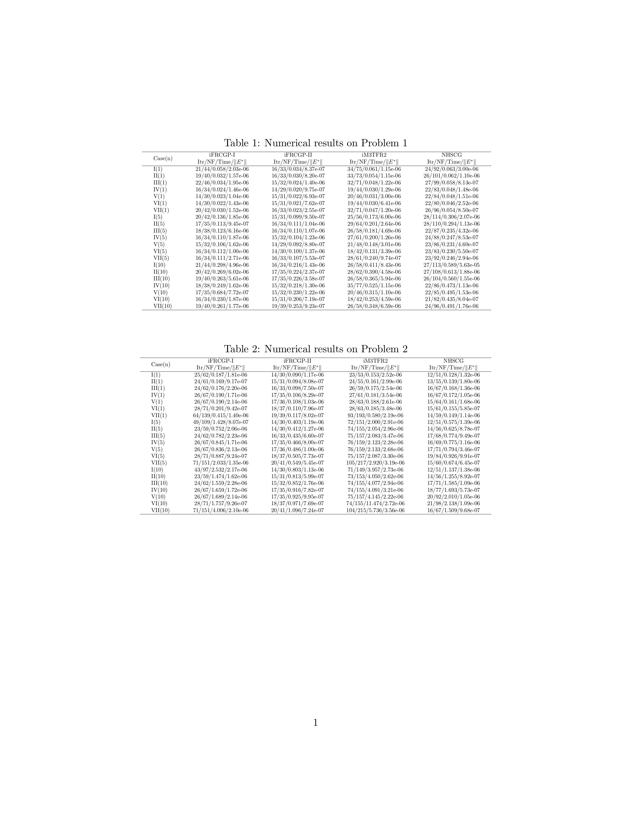 Numerical Results of iFRCGP-I and iFRCGP-II