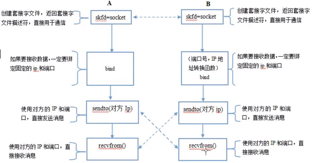 如果不需要回答对方数据的话,可以不用保存对方的ip和端口,这时recvfrom的最后两个参数写NULL,此时与recv函数的功能完全等价。