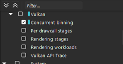 Snapdragon Profiler可以帮助您确定并发分块何时处于活动状态。在捕获跟踪模式时,包括并发分块属性: