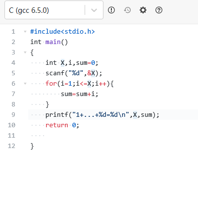 1.2要求读入1个整数X,然后输出1+2+3+...X 的和。