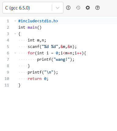 本题要求你为电子宠物汪做一个模拟程序,根据电子眼识别出的两堆小球的个数,计算出和,并且用汪星人的叫声给出答案。