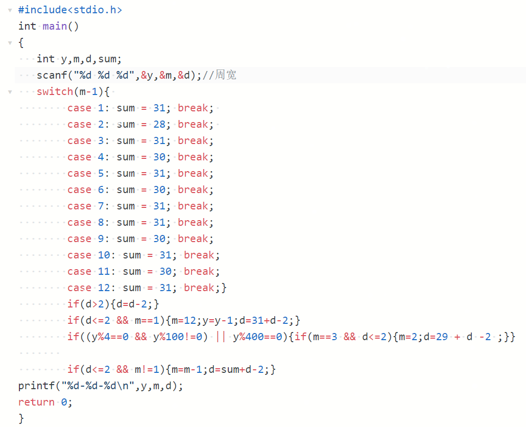 | 解决办法:在switch的代码后面使用if语句考虑闰年与非闰年的情况。 | ||