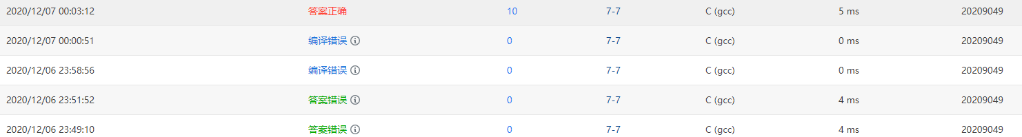 部分正确:语句顺序不对,第一个if时没有用return 0;