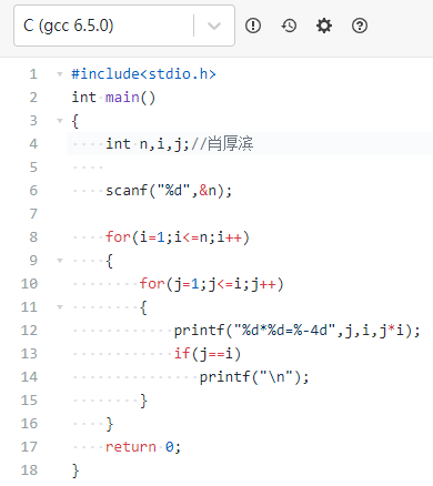 解决方法:将%d*%d=%d%t改成%d%d=%-4d.