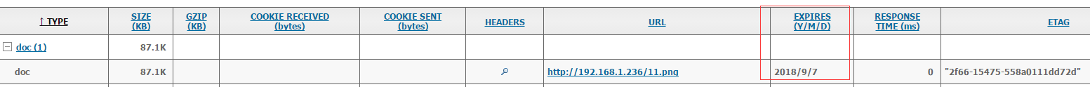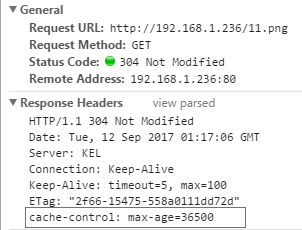 可以从上面看到已经设置了过期时间,而且是一年,也就是说使用的是默认设置,在http的头部信息Cache-Control和Expires字段中可以看到缓存的时间,在下面图中也可以看到缓存时间。