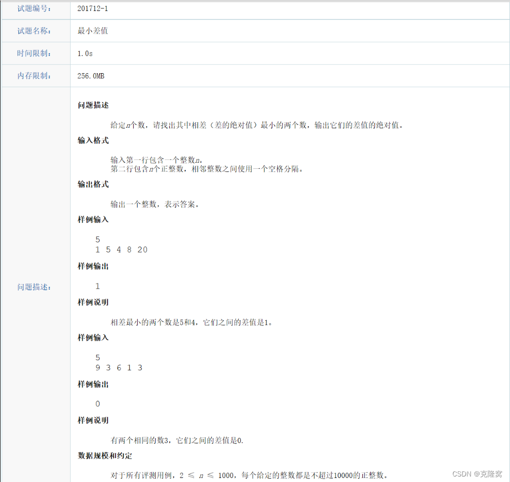 int minsub = 10000; //设定两个不超过10000的正整数的差值最小为10000,因为差值或者其绝对值不会超过这个值