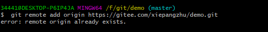 2、再输入$ git remote add origin https://gitee.com/xiepangzhu/demo.git