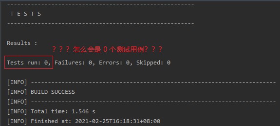 但是在项目目录中,执行 mvn test,或者 Intellij 右边的 Maven 打开后执行 Lifecycle 的 test 时,出现问题: