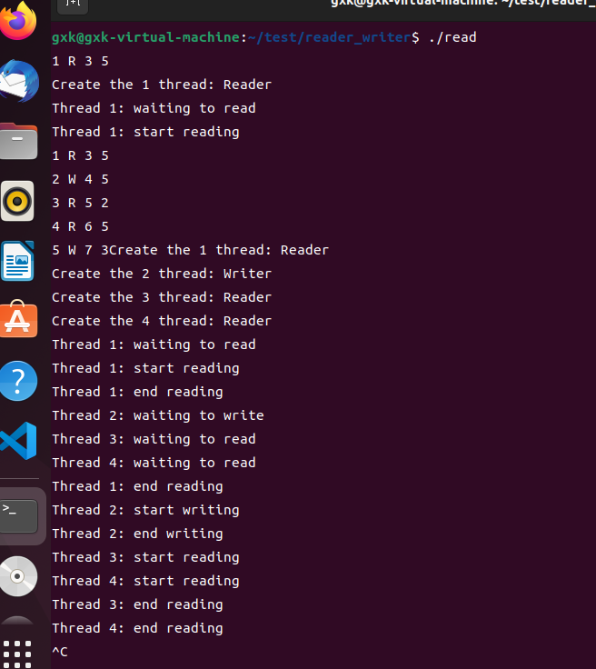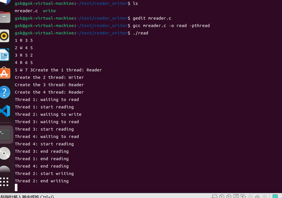 3 在main中测试若干个 reader 和 writer 的测试,提交截图说明代码的正确性