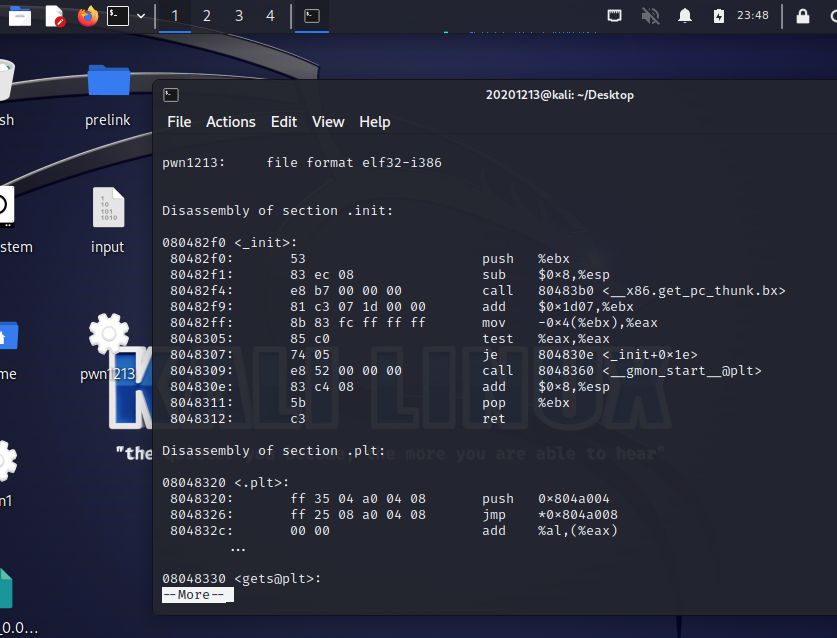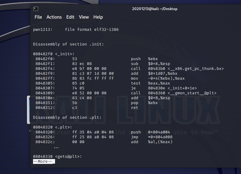 objdump -d pwn1213 | more #反汇编,使用more阅读结果