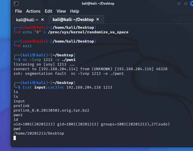 能在pwn1213中缓冲区溢出运行成功,不能在kali中直接运行?