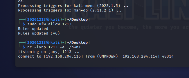 nc -lvnp 1213 -e ./pwn1213