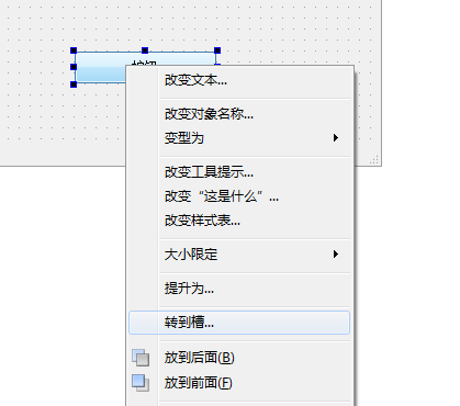 双击pushbutton,可以修改按钮文字,修改为“开始”,右键单击,点击“转到槽”