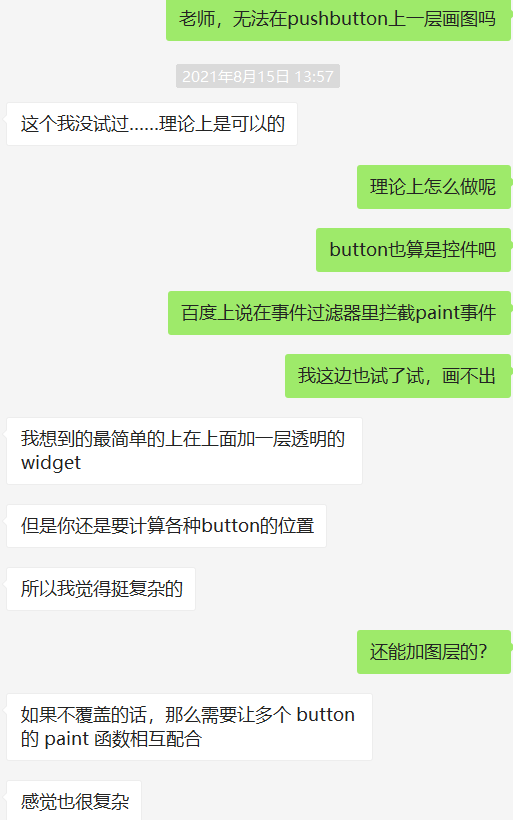 这是最难为我的一步,因为我采用的方法是用button显示图片,但是Qt不允许在控件上面画,也就是不能叠加显示,我和老师交流了一下,很没有头绪