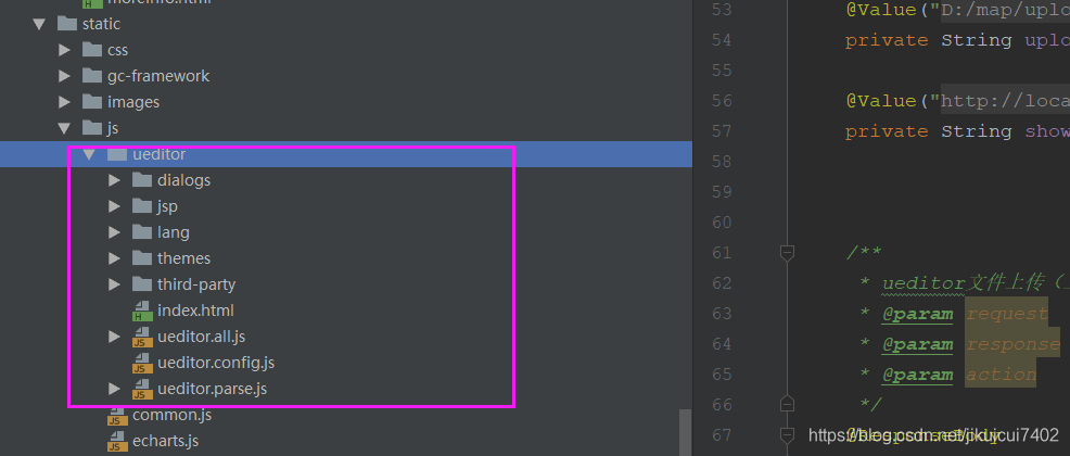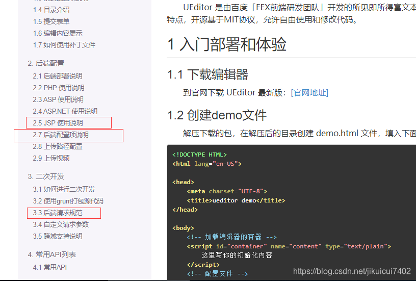 1.1 jsp 和html 前者使用jsp直接写配置的初始化 【比较方便】 后者需要创建java的controller层 写接口 获取的配置文件稍微比较 麻烦 需要根据项目路径来判断 通过request来获取路径只适合前后端不分离的项目 如果分离需要获取项目所在的路径 拼接js相对路径 加上配置位置 config.json 才能开启富文本的上传初始化