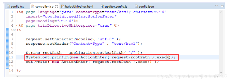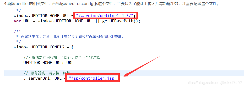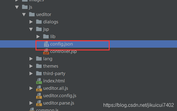 首先,在ueditor.config.js的配置项中,我们可以看到serverUrl 在页面是jsp的项目 可以直接引用java版自带的controller.jsp这个文件