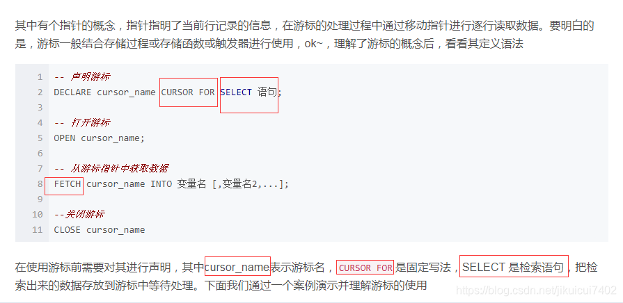 fetch cur into tmp ;#从游标中取值并存放到tmp中