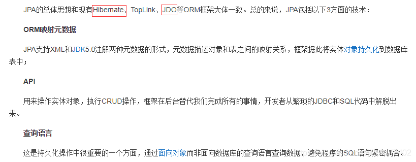 下面简单解释下JPA和JDO: