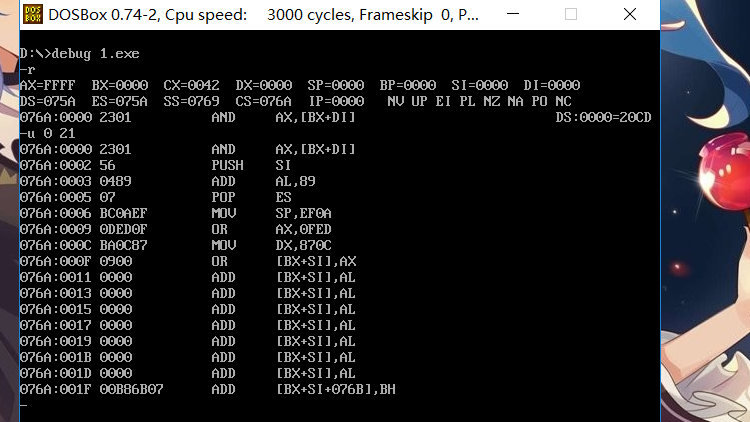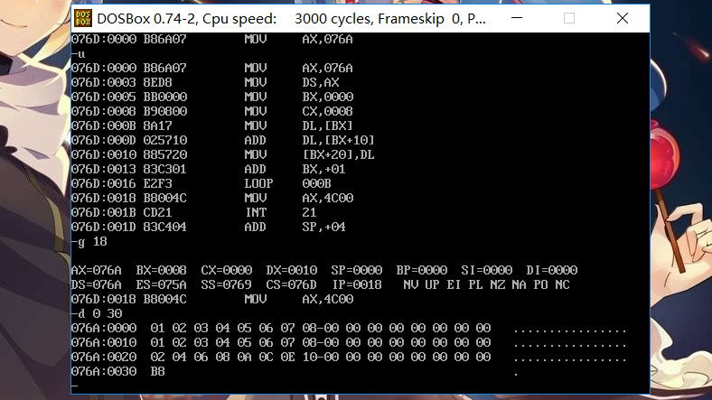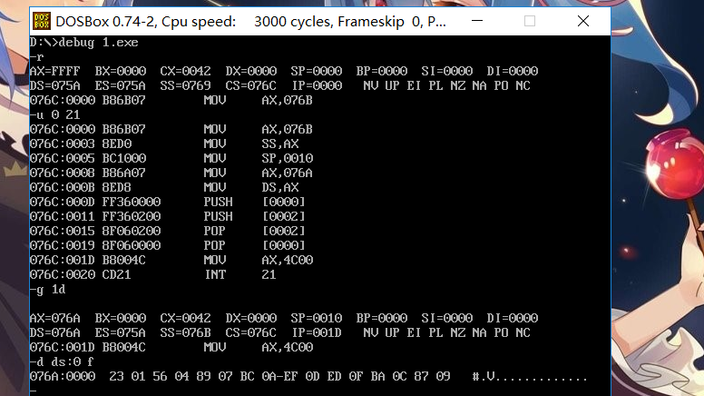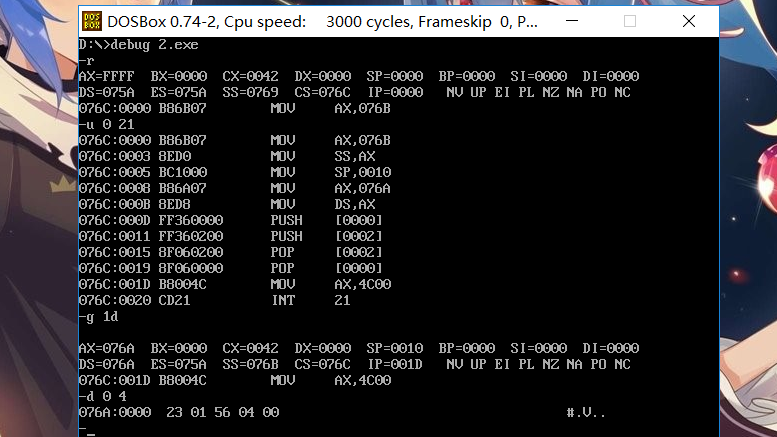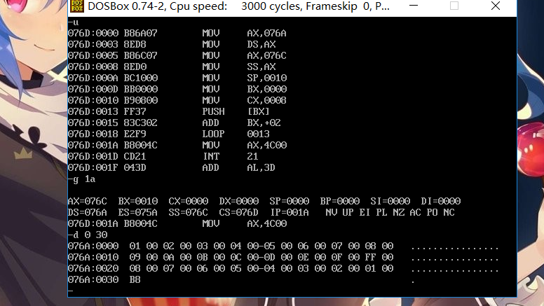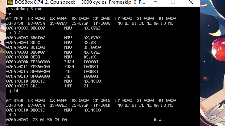 <2>cpu执行程序,程序返回前,cs=076Ch, ss=076Bh, ds=076Ah