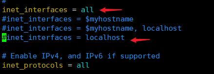 文字说明:修改 /etc/postfix/main.cf文件,将其中的 inet_interfaces 设置为all。