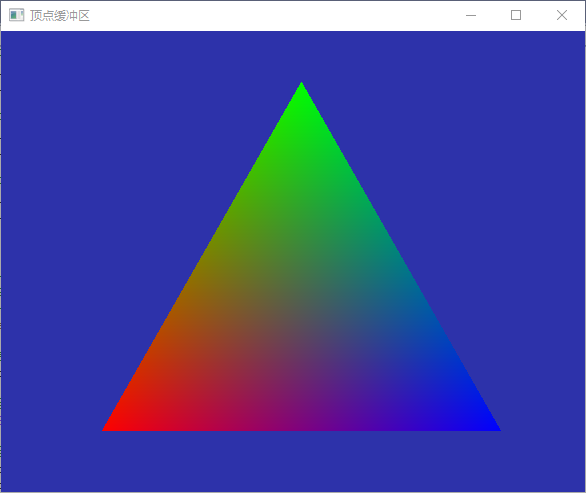 可以看到这个颜色是渐变色,那是因为当顶点格式包含D3DFVF_DIFFUSE颜色的时候,Direct3D会自动对顶点颜色进行插值计算(Gouraud 着色),这是 3D 渲染中默认的颜色处理方式。