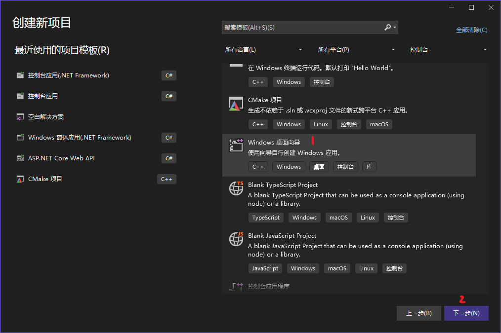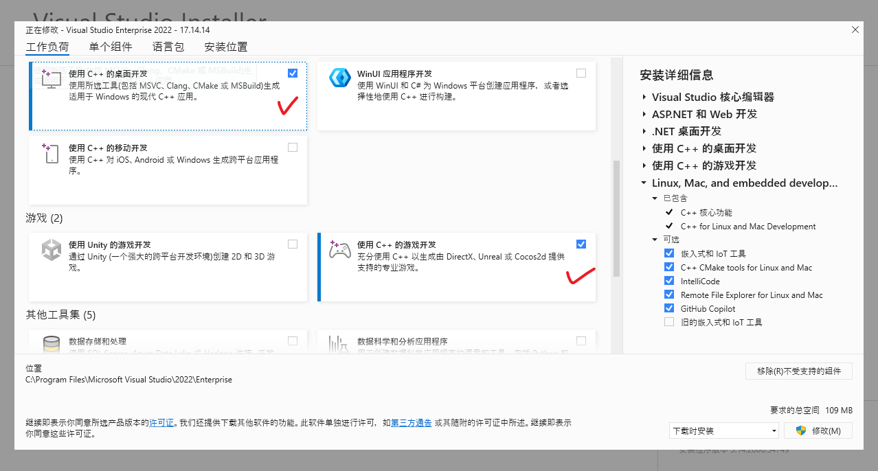 主要选择 使用C++的桌面开发就可以了。其他都是副选(C++的游戏开发)