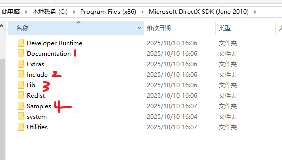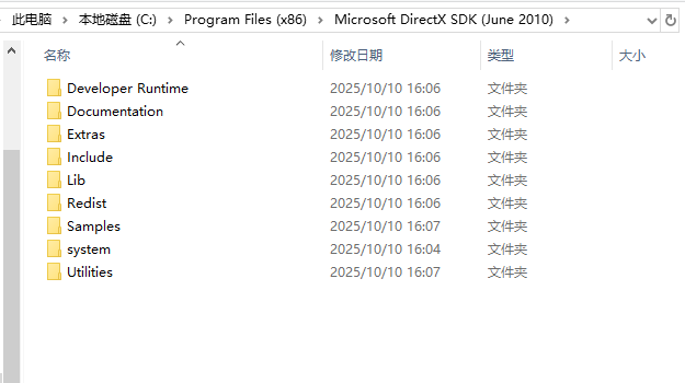 下载[Microsoft DirectX SDK (June 2010).zip 下载地址]内的资源,解压到此文件夹即可.